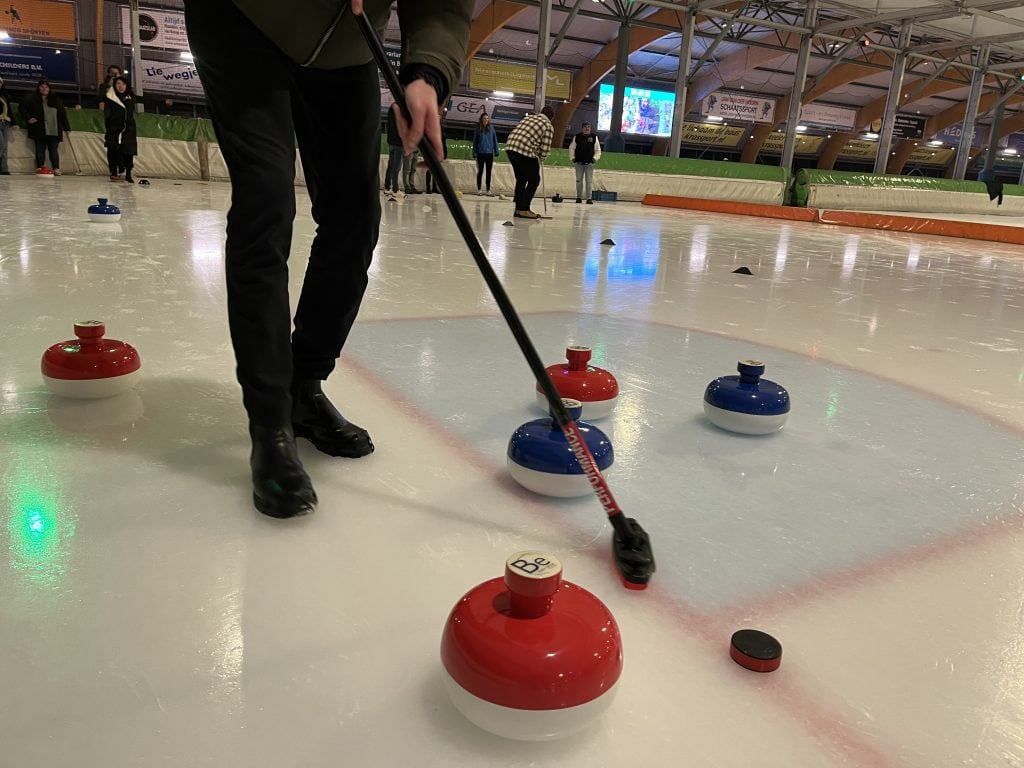 Bij een Winters Bedrijfsuitje Curling in Haarlem hoort een gezellige sfeer en een originele competitie. Met onze gekleurde Curling stenen maken wij deze sport op het ijs bekend bij jullie. Natuurlijk niet al te serieus en met een hoge funfactor.