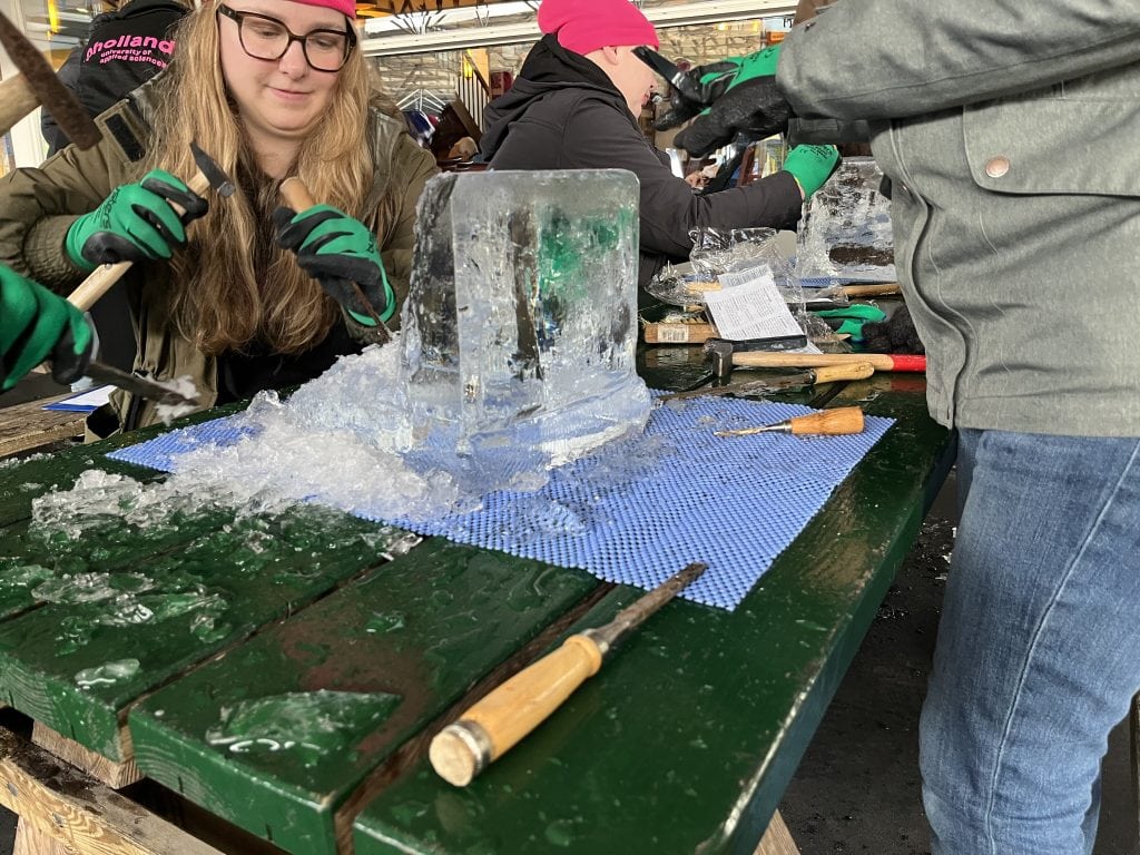 Nadat iedere groep een goed concept bedacht (en geschetst) heeft, gaan we daadwerkelijk beginnen met het sculpturen. In deze workshop leren we iedereen de kneepjes van het vak aan en zullen de ijssculpturen beoordeeld worden op de samenwerking en originaliteit door een interne of externe “deskundige” jury, waarna een leuke prijsuitreiking zal volgen! Hoe gekker hoe leuker! Natuurlijk afsluiten met een borrel of stampotbuffet in Maartens cafe.